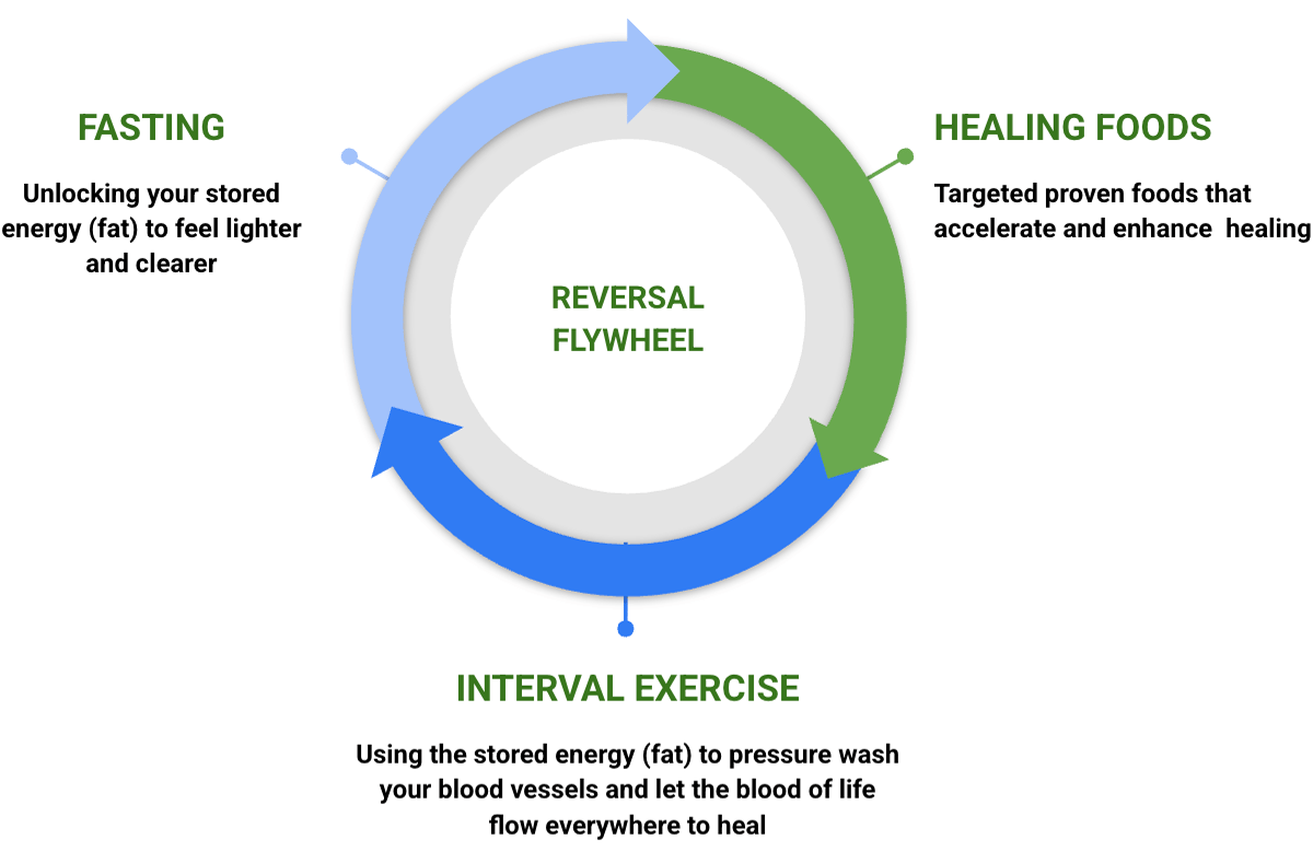 Healing Foods: Targeted foods that both clean up metabolic overload (LDL, glucose, fatty acids) as well as heal damaged cells, organs, systems, and restore proper hormonal balance. These healing foods replace the damaging foods you once ate, and the reversal becomes remarkable.